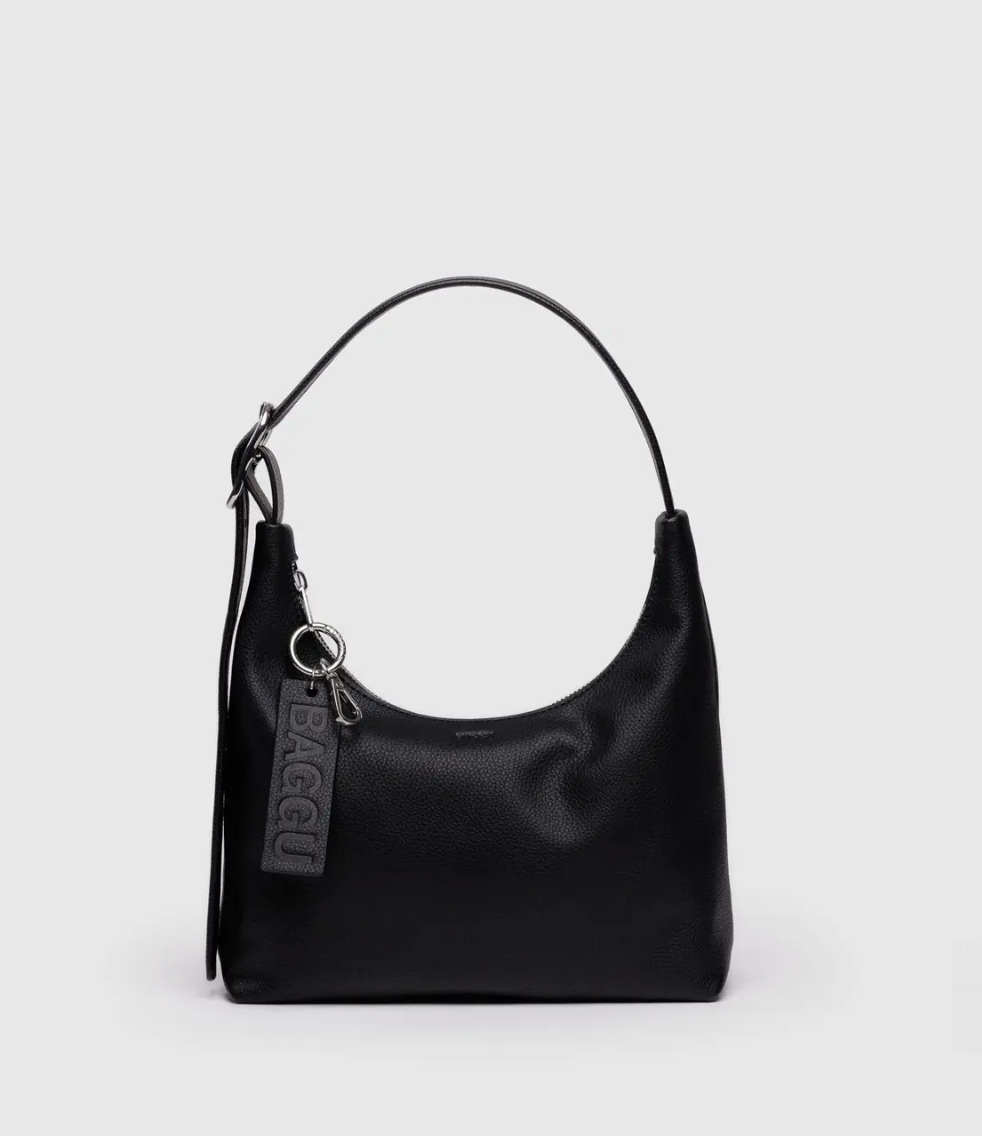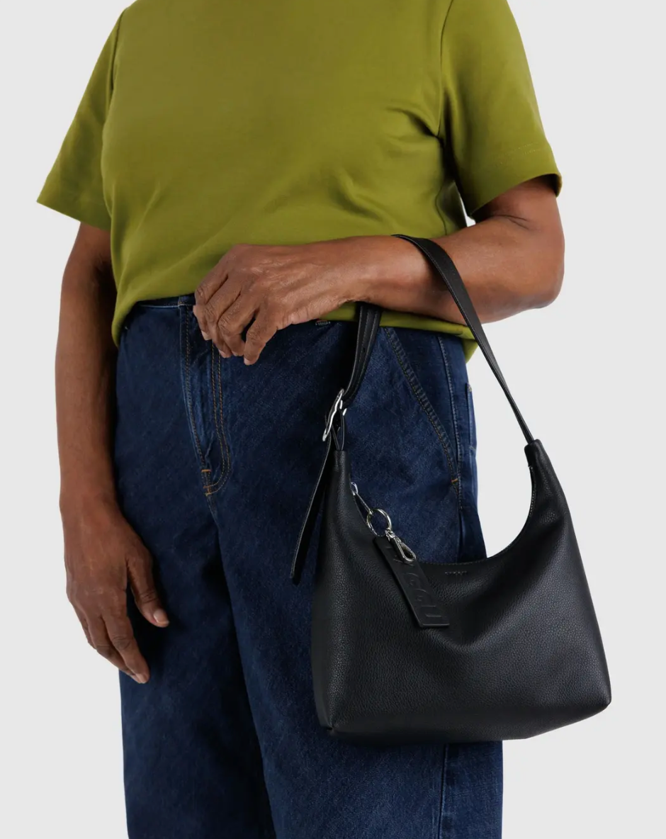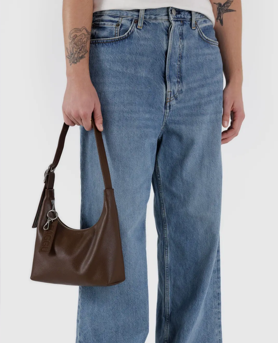 The most premium expression of BAGGU'S infamous mini shoulder bag. Crafted with simple, elegant lines & recycled leather that’s been fine-tuned for quality, style, & impact. The material upholds BAGGU'S durability & responsible sourcing standards alongside truly elevated details, like a signature grain, custom hardware, & recycled trims.
