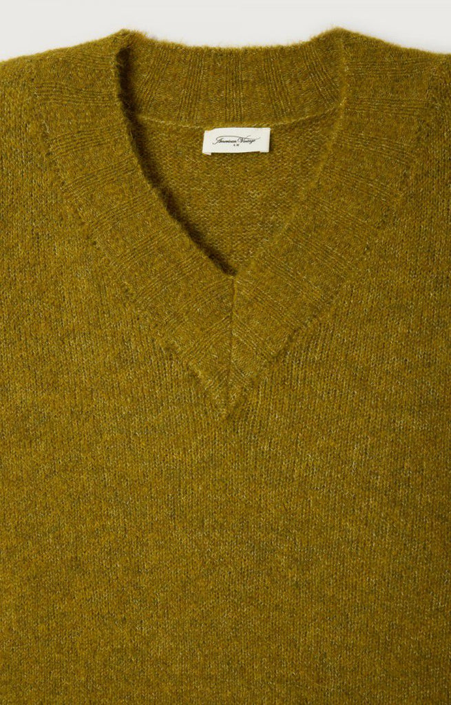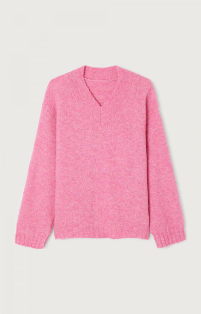 The East jumper is an iconic piece in the American Vintage wardrobe, recognisable by its loose fit, V-neck & generous knit. Made from a blend of Italian yarns, it will win you over with its premium, fluffy & cosy texture. Its thick knit & marl colours give it a timeless charm, combining cosy comfort with a casual look. Wear over a dress or shirt to subtly reveal the collar.