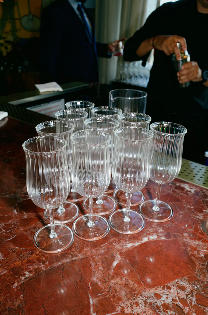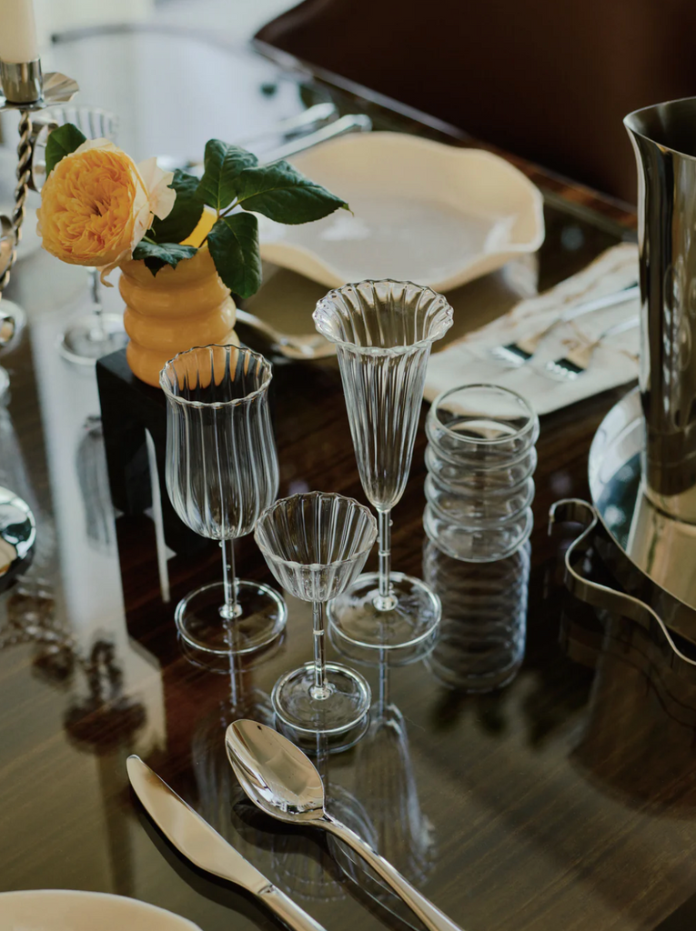 The Bouquet Collection is a five-part stemware collection made out of borosilicate glass that blurs the boundaries between functional and decorative household items. With each glass’s bowl and brim fanning out like a flower head, the collection groups together like a bouquet of wildflowers – each shape specific to a particular type of drink yet united in its ability to be arranged side-by-side in a harmonious collection.