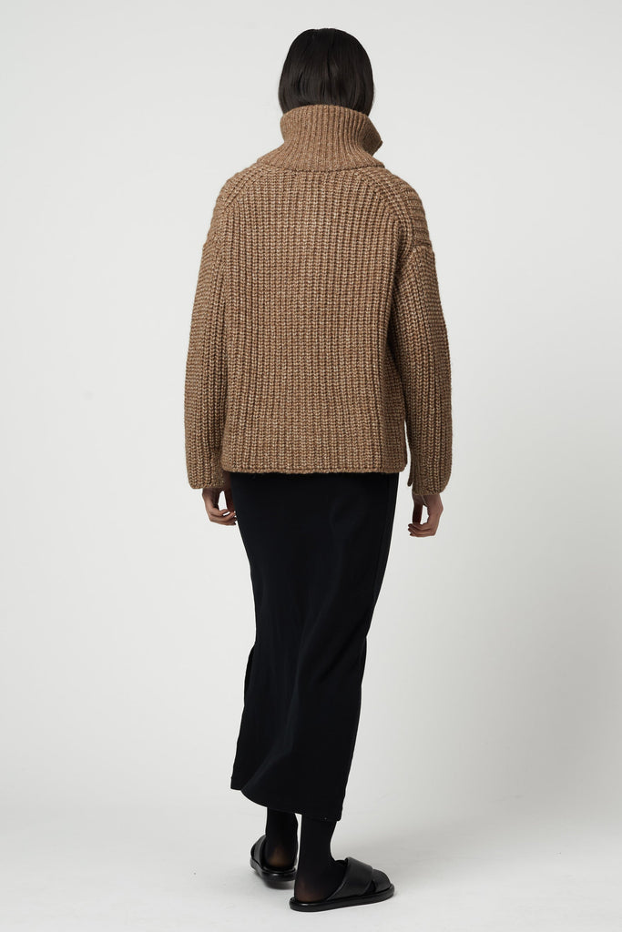 Chunky zip cardigan in an Alpaca & Pima Cotton knit with a versatile two way zip for styling. Contrasting pima & alpaca yarns add breathability to the knit’s coziness as well as textural coloration.