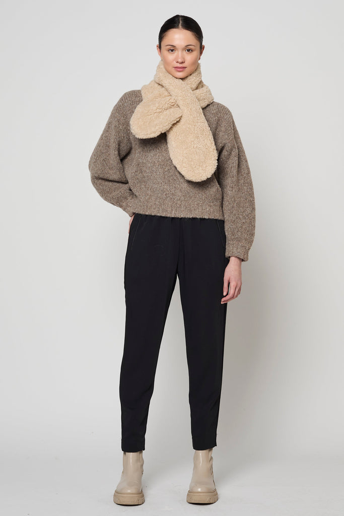 An Atelier Delphine icon in fresh colors. The Balloon Sleeve is a cropped crewneck sweater with tapered voluminous sleeves & a relaxed body. A wardrobe staple for the Atelier Delphine woman - romantic, minimal & effortless.