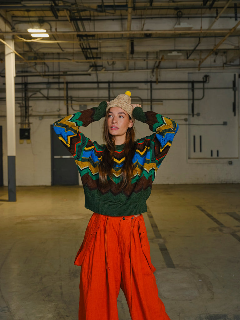 The iconic pattern of this cozy sweater pays homage to the great Missoni house.