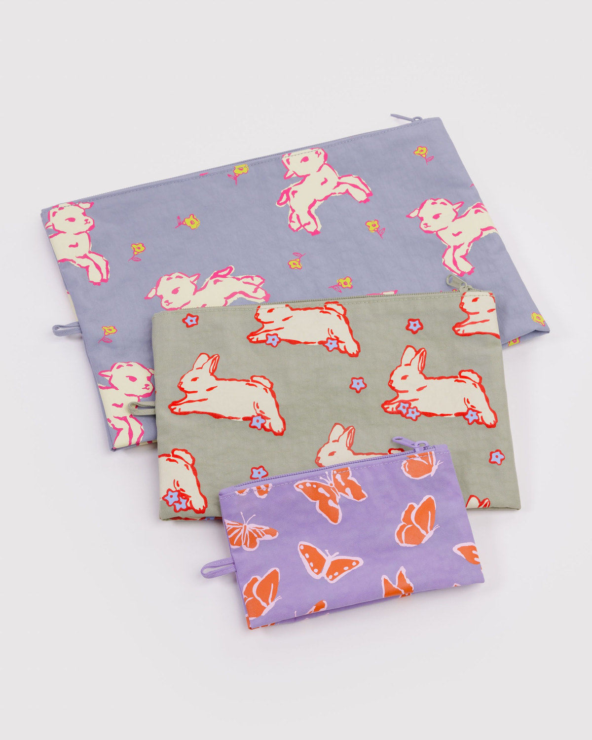 Our Go Pouch Set makes it easy to keep your bag neatly packed and organized. Whatever you're toting—coins, cords, or an extra pair of shoes—this set of three all purpose pouches keeps it together. They expand to hold your essentials and lay flat when not in use.