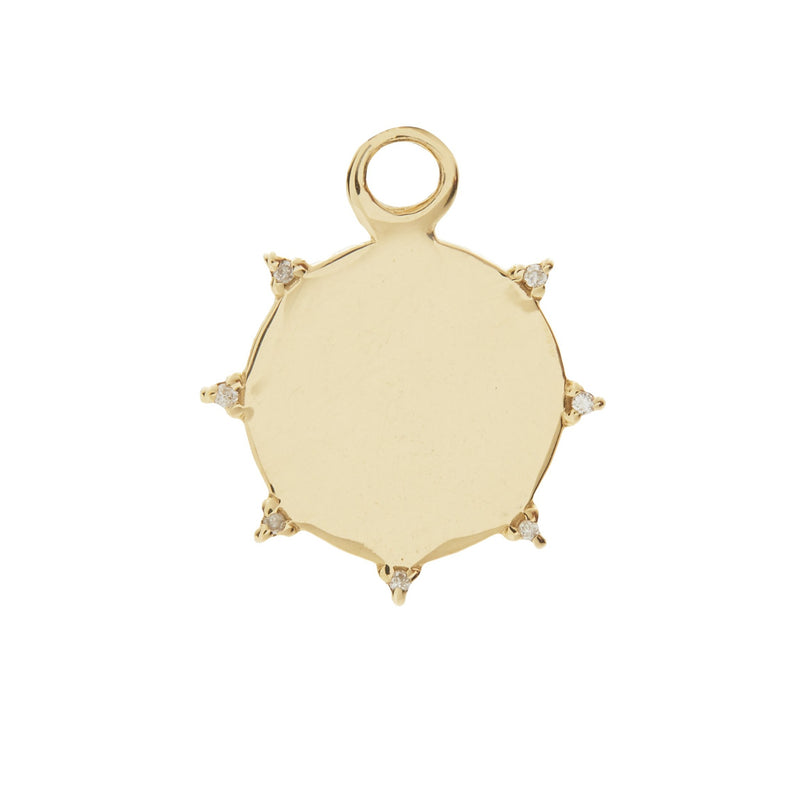 Diamond Sunbeam Medallion features a round pendant surrounded by seven prong set diamonds.