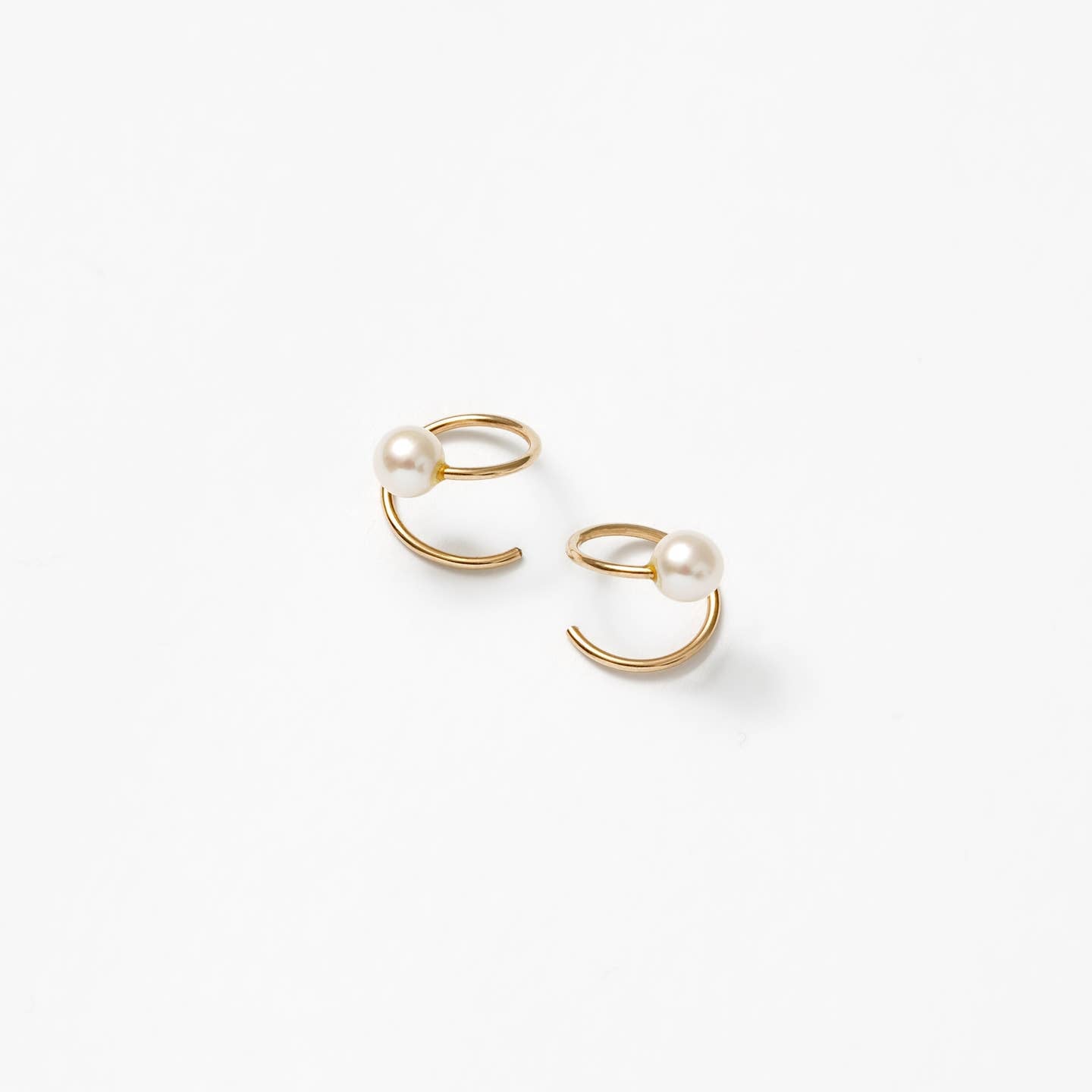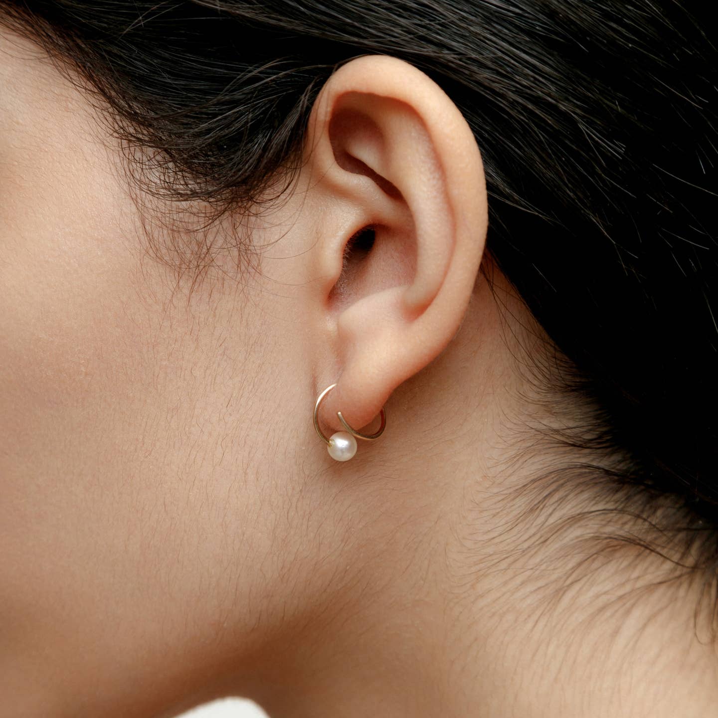 Spiral wire threader earrings with freshwater pearl caps.