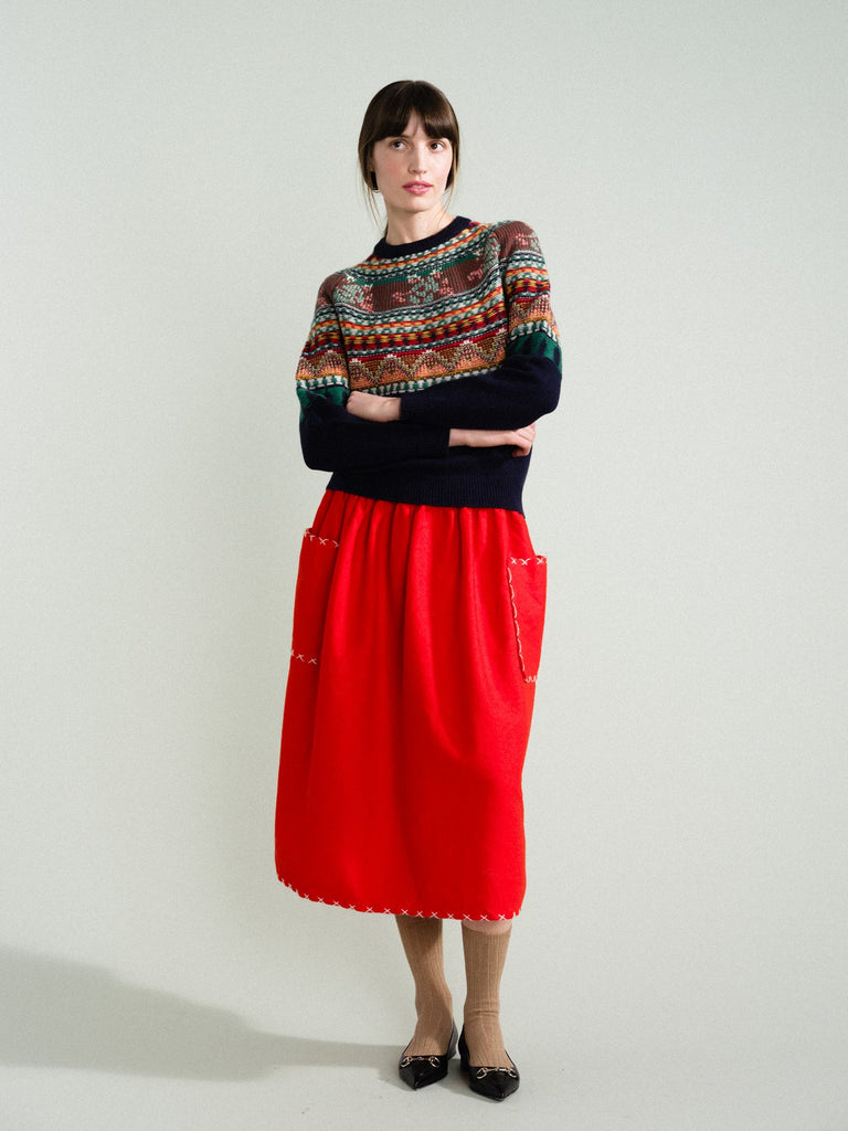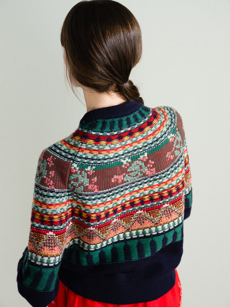 This is not your grandma’s Fairisle sweater (though we love those too!). It’s just as cozy & comfortable as hers but with a modern touch. We reversed the pattern for a fresh twist on the classic. Wear yours to add a bit of color & pattern to foggy fall days.