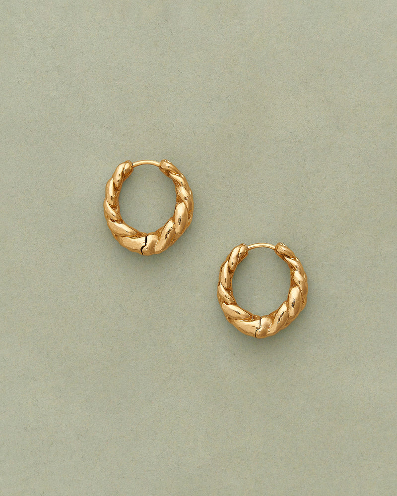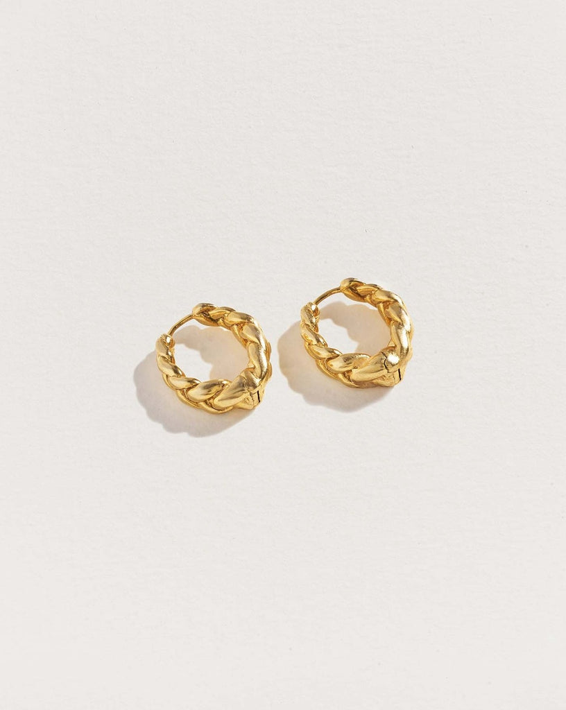 Substantial hoop earrings with a bold yet graceful braided motif.