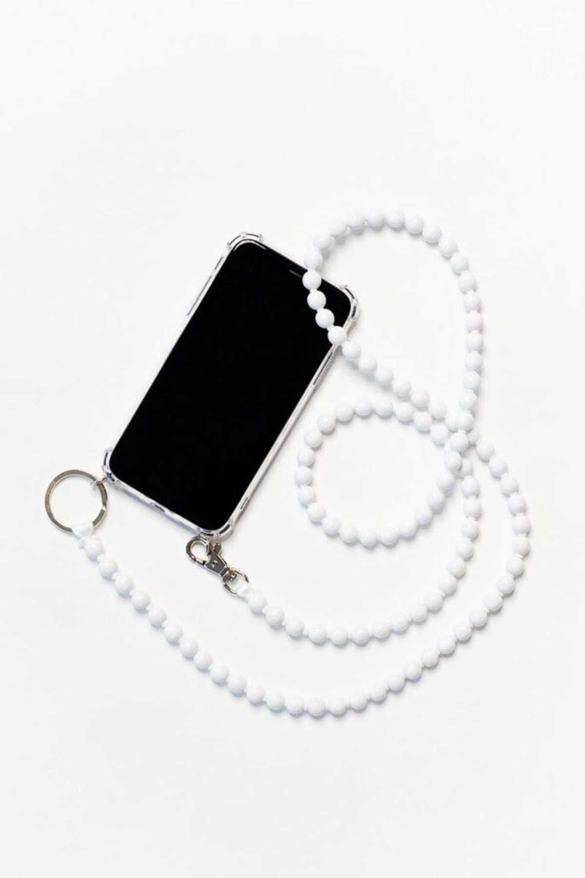 Perlen Phone Necklace in White