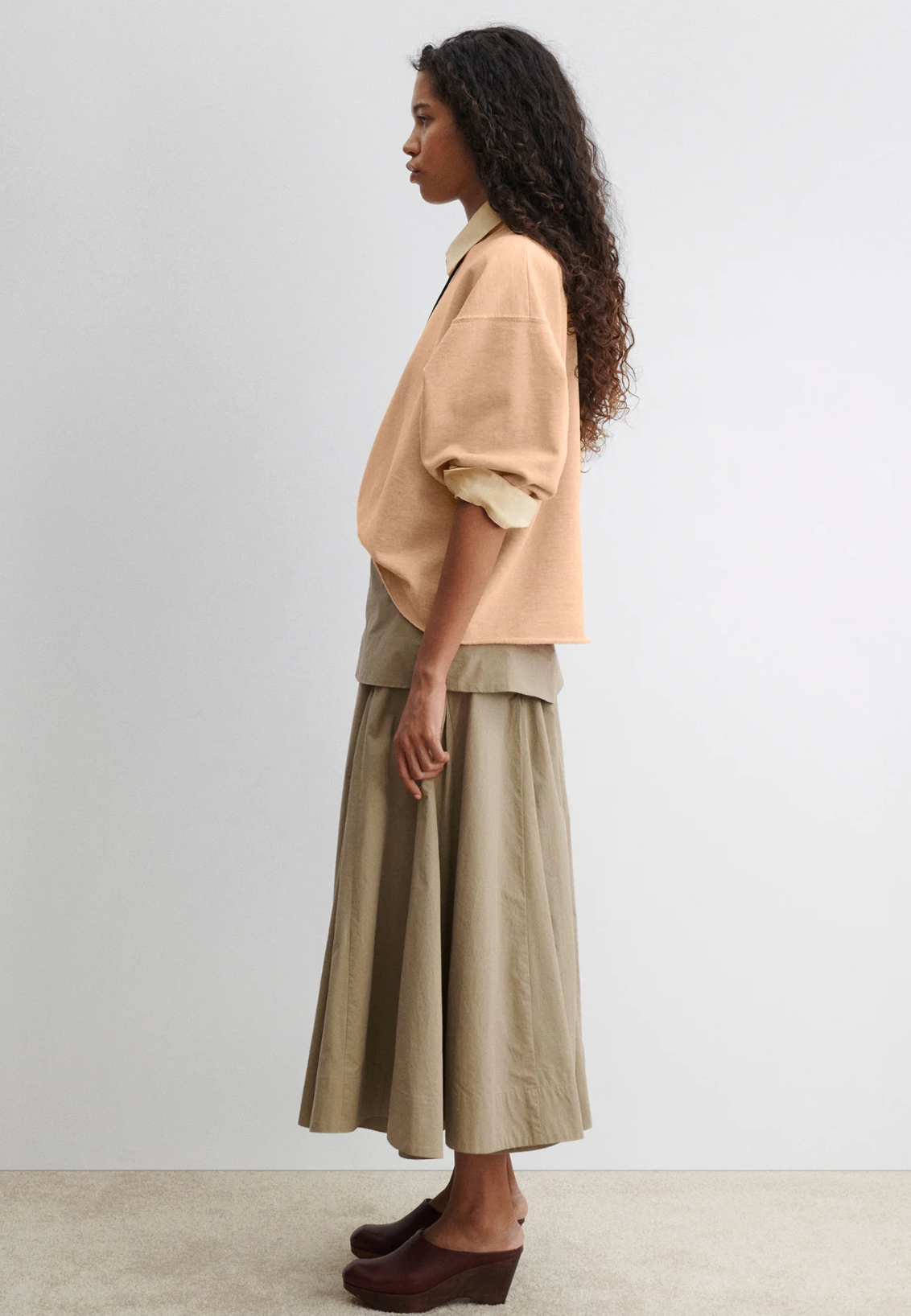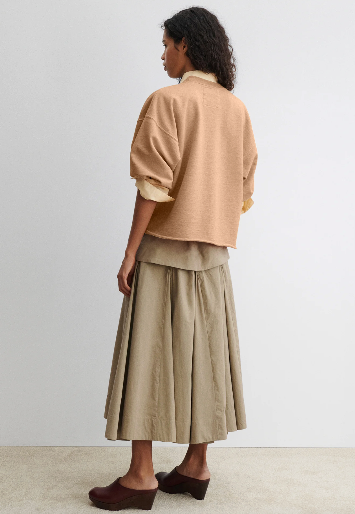 Rachel Comey's classic crewneck sweatshirt features drop shoulders, cropped sleeves, and a raw edge hemline with unique distressing throughout. It's a versatile piece that adds a touch of effortless style to any outfit.