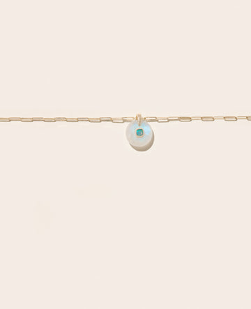 These 2 new necklaces perfectly fit into the lineage of the Orso embedded stones. A composition of vibrant colors with round shapes, bringing together moonstone, turquoise, and iridescent opal, harmoniously suspended on a gold chain, right at the neckline.
