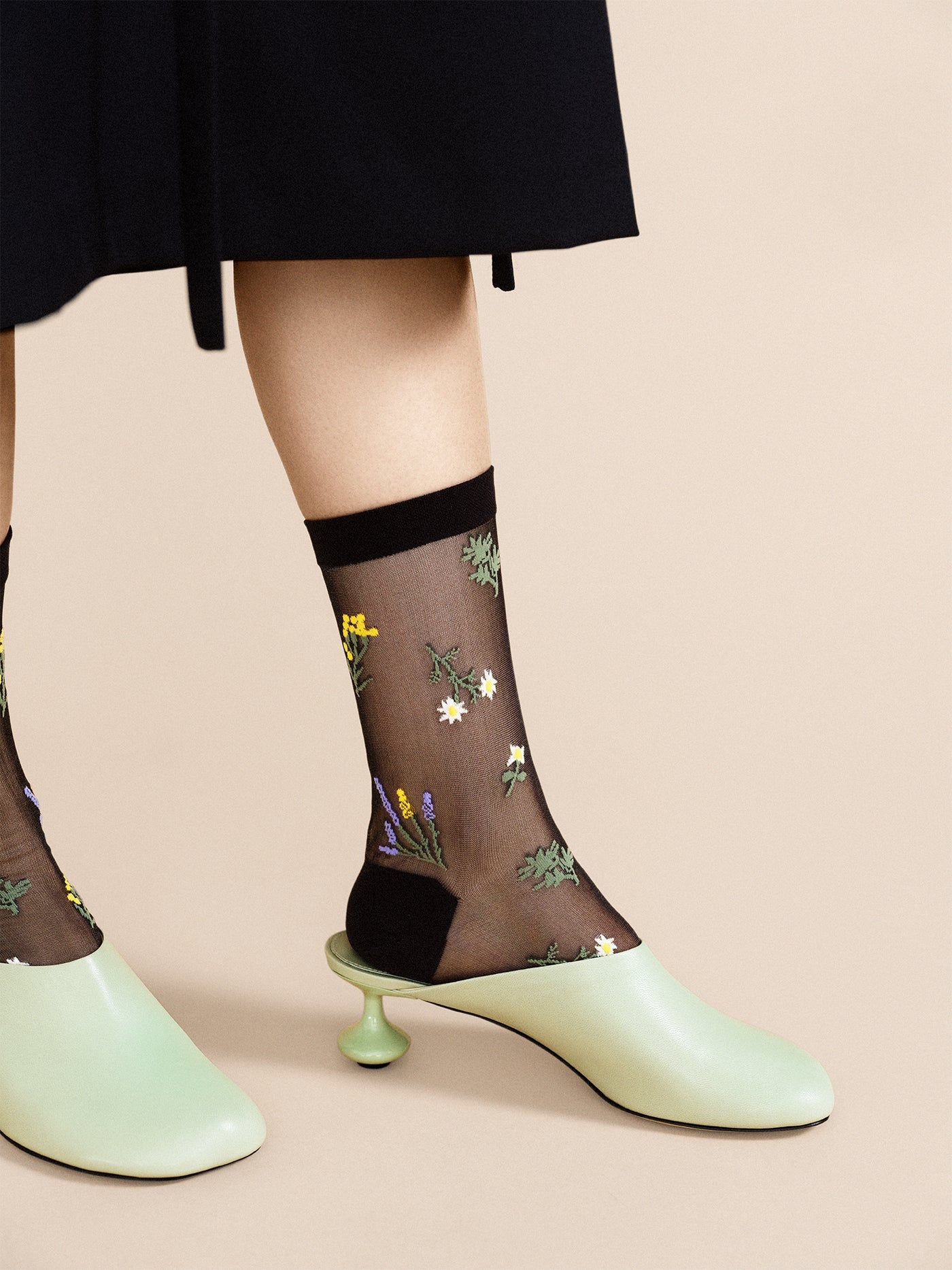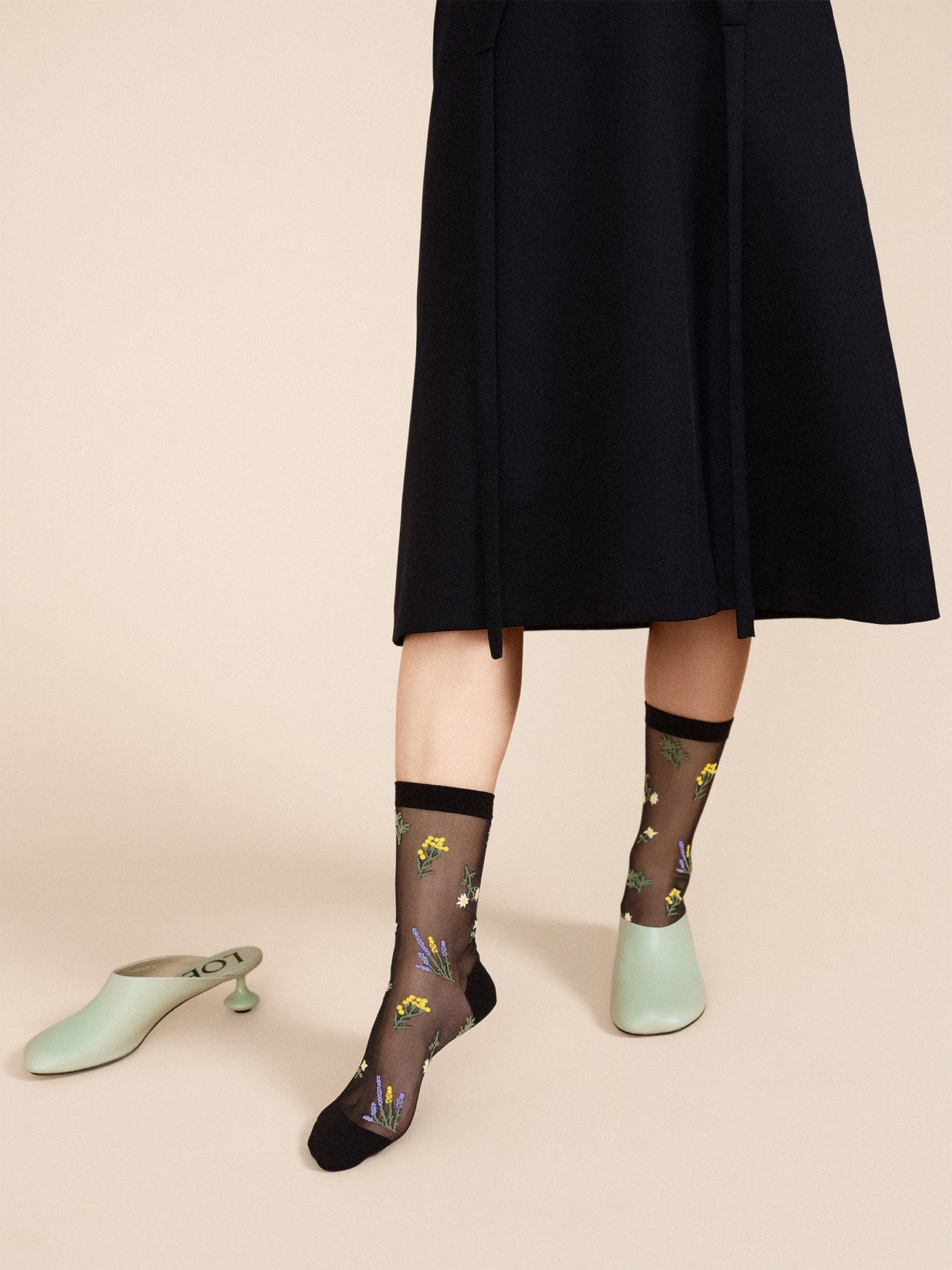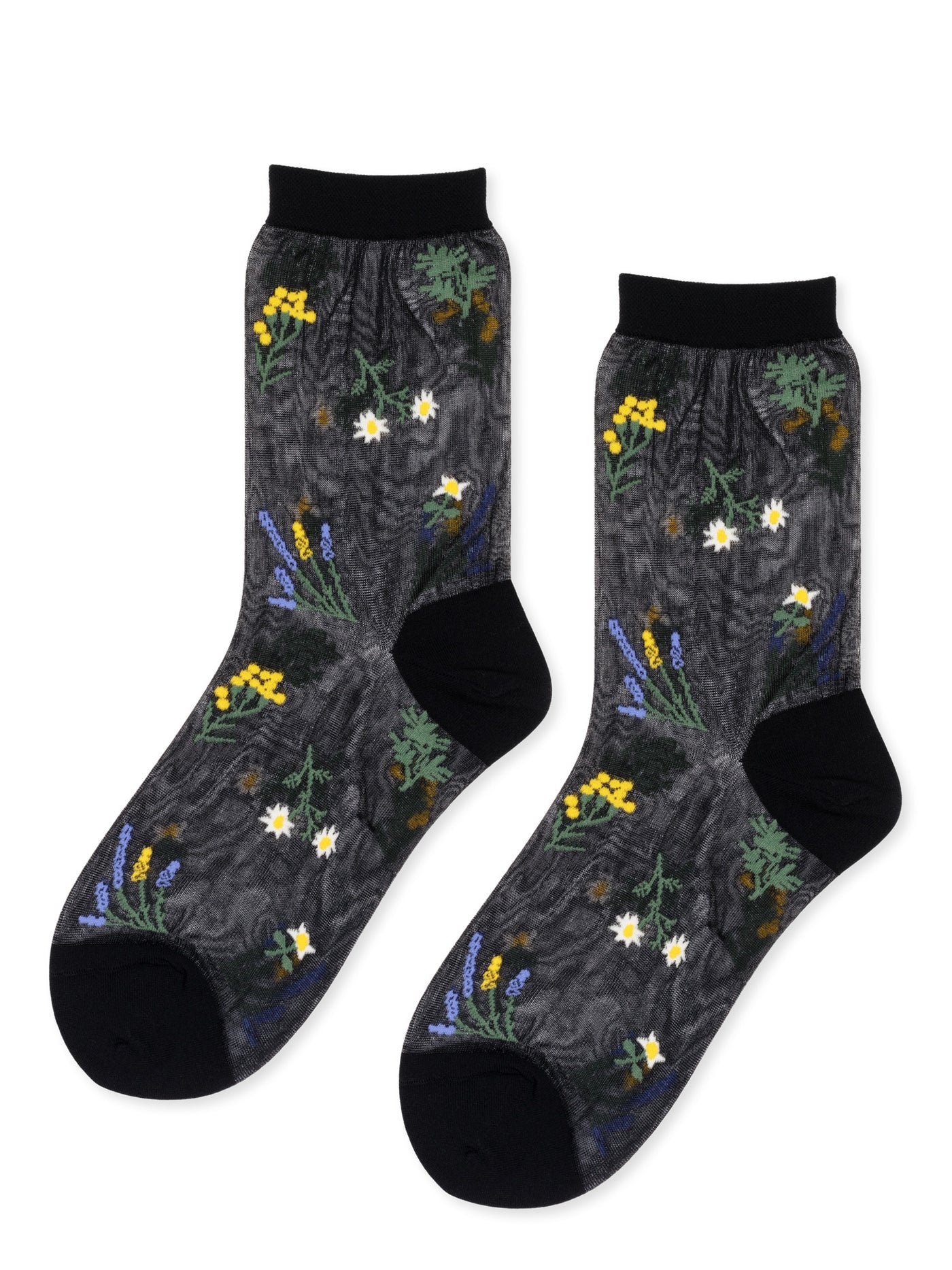 You can always count on wildflowers to bring a smile to your face. They thrive and add beauty no matter where they grow! Go ahead, slip on these sheer crews and go a little wild.